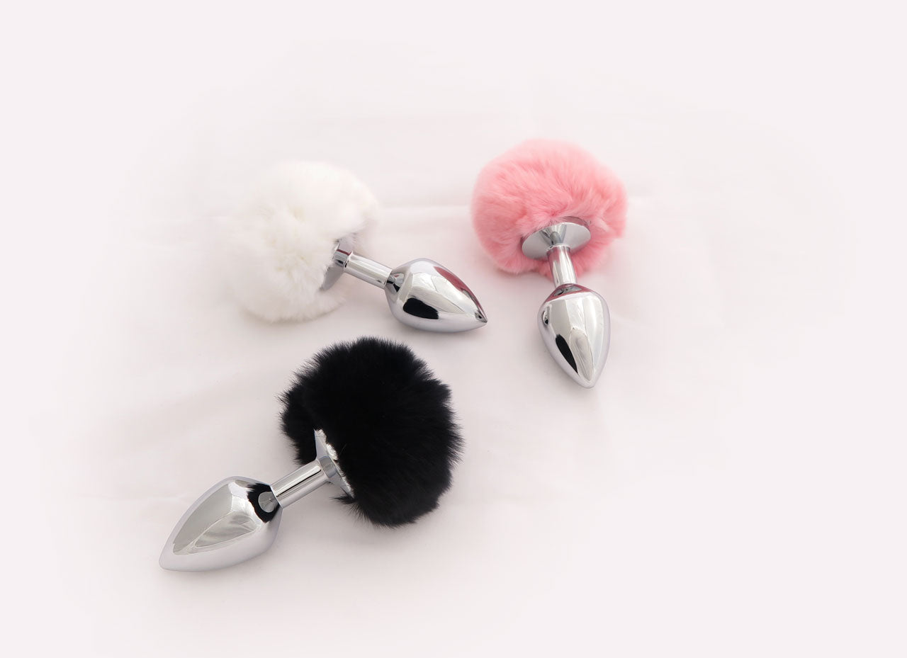 The cheerful, tender and joyful bunny makes for easy fun in your sexual play. Empower this nature for your cosplay and pet play adventures with our bunny tail butt plug. Its fluffy fur tail comes in your choice of either pink, white or black fur.