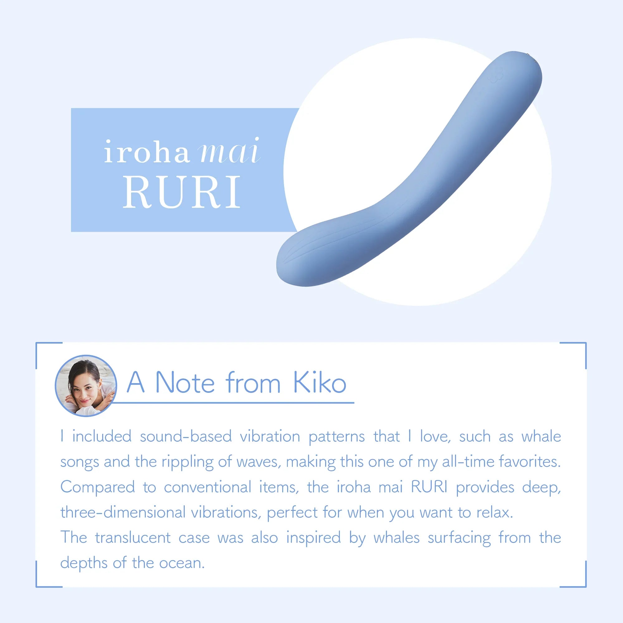 Recognizing Kiko Mizuhara's long-standing love for iroha and her understanding of the importance of self-pleasure, we invited her to collaborate with us on the development of the iroha mai, an item that provides a completely new type of vibration experience.