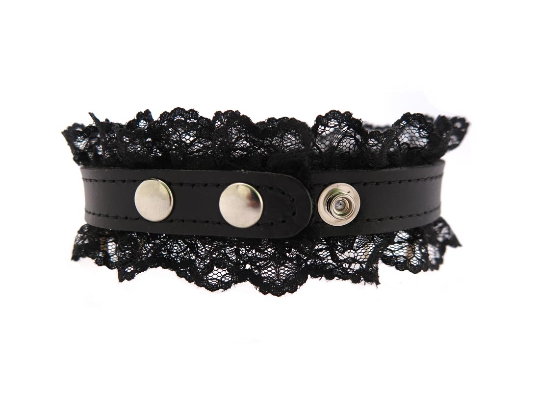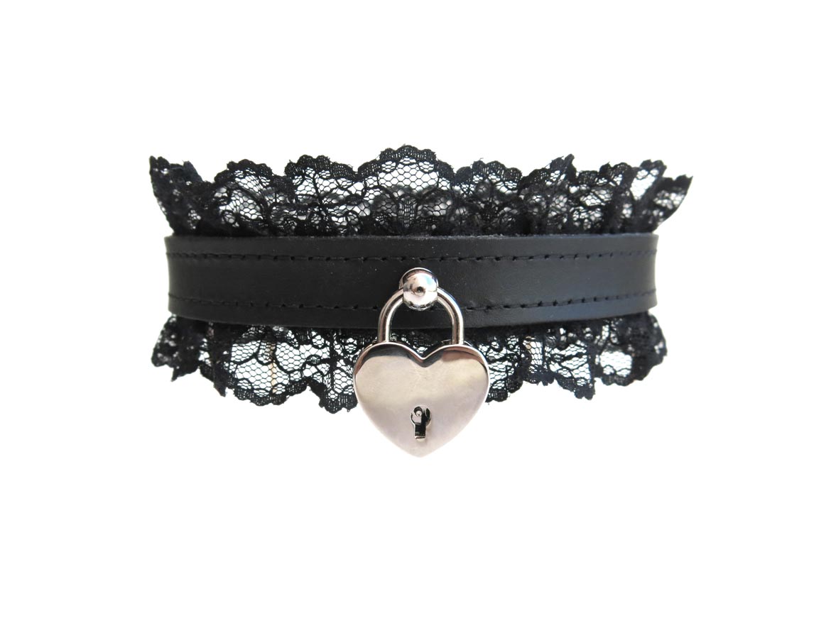 Say hello to leather and lace! This bondage collar from our premium leather collection is made from soft and supple leather and black fabric lace edging. The suede interior makes this collar soft on the skin and the stitched edges add a refined and elegant final touch. A heart lock pendant adorns the front for a feminine touch.