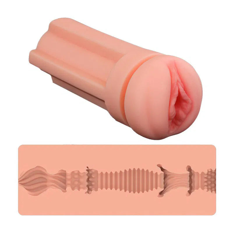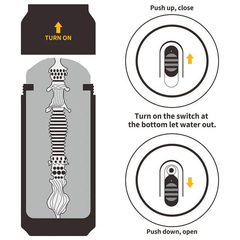 This masturbator has an easy-to-use and compact design in the shape of a beer can. The masturbator itself is made of high quality, skin-like TPE material which is soft and supple. The tunnel of the masturbator has lateral ridges, bumps and nubs throughout the whole length which is clearly noticeable and pleasurable when inserting the penis.