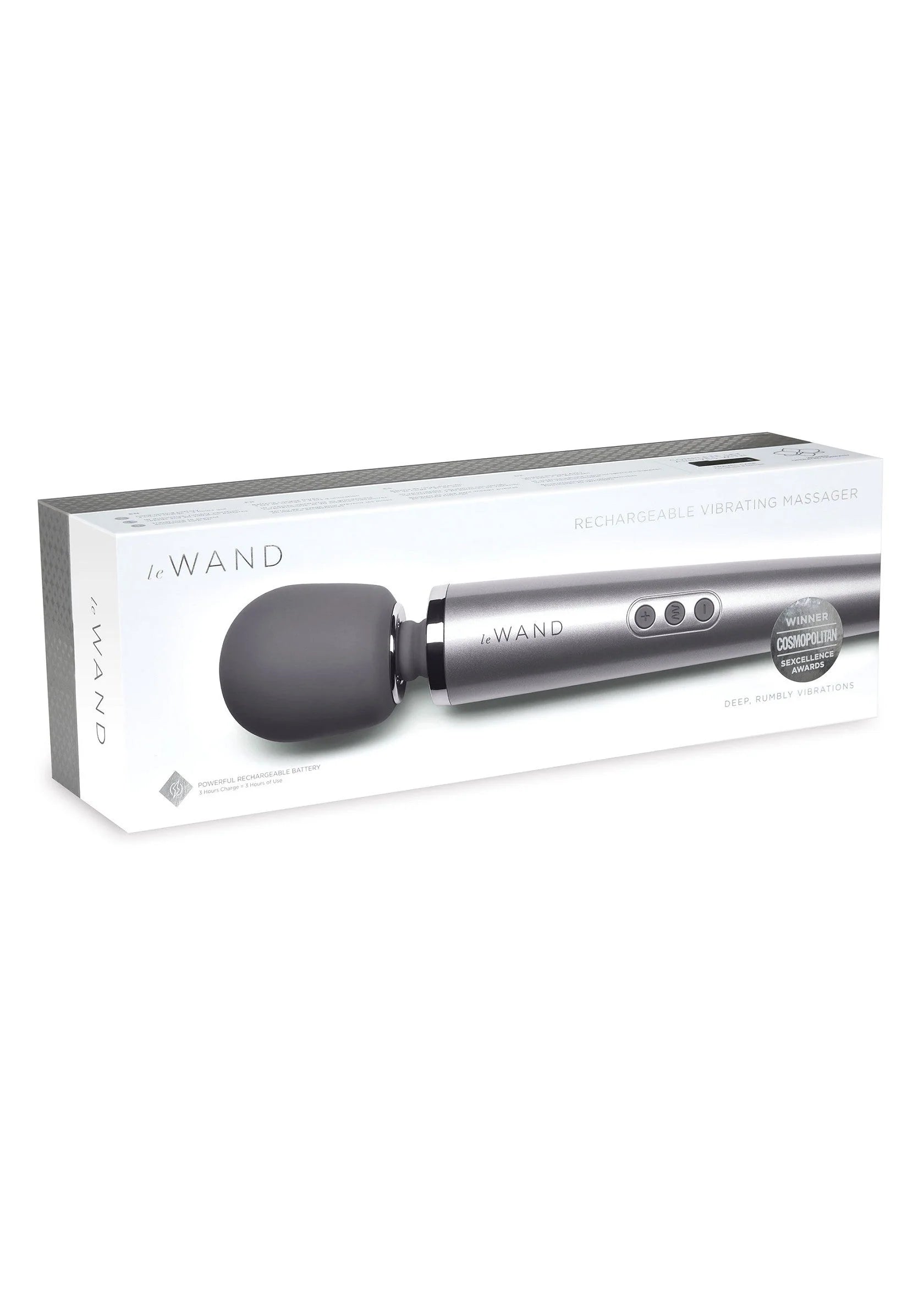 Le Wand Rechargeable Vibrating Massager delivers intense and sensual pleasure. This luxurious wand has 10 distinctive, rumbly vibration speeds and 20 vibration patterns. Powerful, penetrating pleasure is granted in the convenience and versatility of a rechargeable wand.